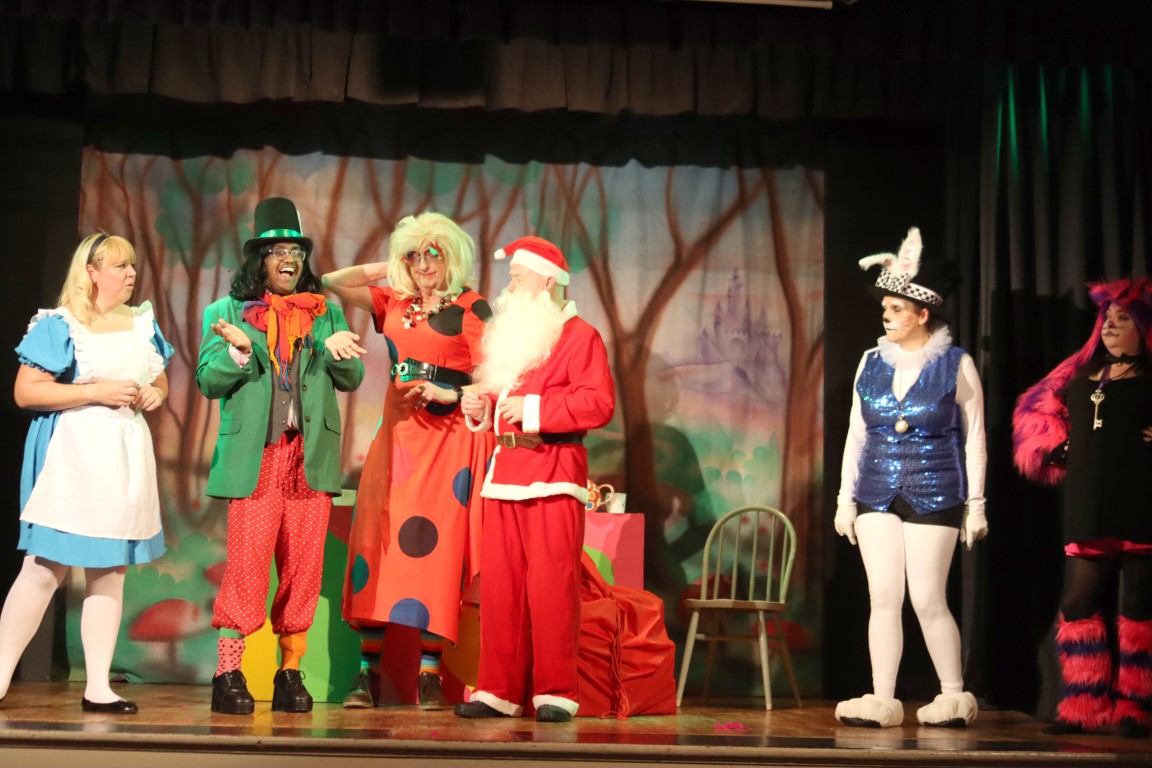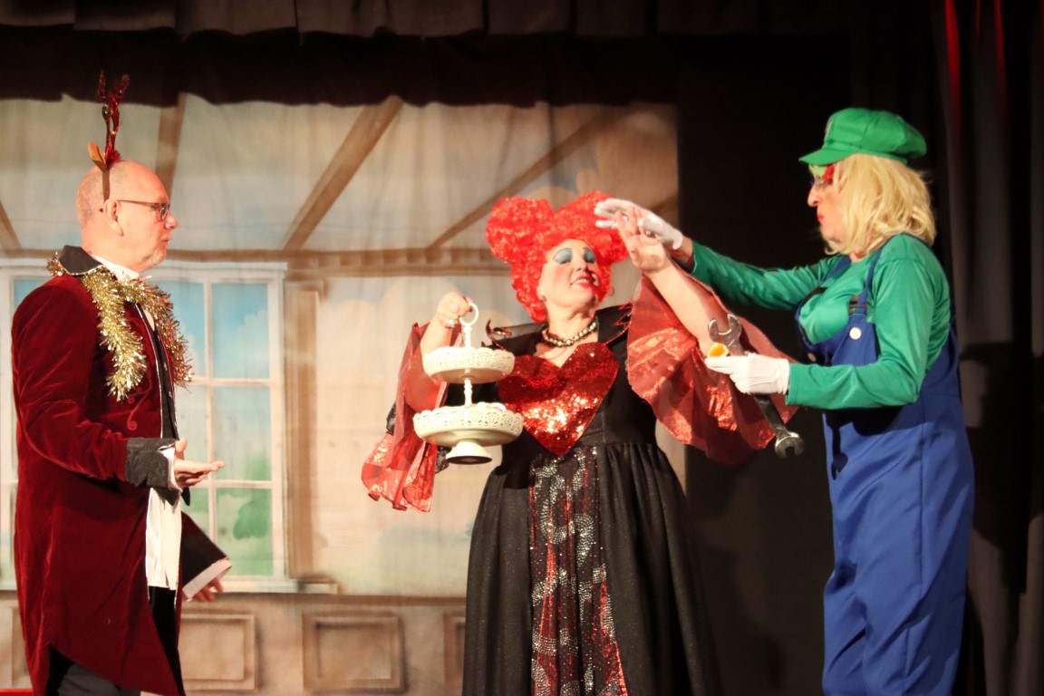 A Christmas Pantomime by Peter Nuttall The evil Queen of Hearts is determined that Christmas will be banned from her realm and Santa ends up locked in the dungeons. Dame, Old Mother Wobbly, her daughter Alice along with some friends from Cuckoo Land are keen to dissuade her. Cast and Crew Alice Wobbly - Kelly Davis Old Mother Wobbly - Des Cann Floppy - Liz Ahern Queen of Hearts - Jane Ferré King of Hearts - Dallas Stuart Tweedle Dumb - Madalyn Brooks Tweedle Dumber - Wendy Cann Hatter - Tim Senanayake Chester - Trinity (Natasha) Parvess-Williams Santa Claus - Roger Simmons Knave of Hearts - Dini Nayak Mouse - Kirsten Poole Director - Amanda Stuart Stage Manager - Lynne Pervical Prompt - Geoff Meddleton Choreography - Trinity (Natasha) Parvess-Williams Set Build - Dallas Stuart, Sam Brooks & Cast Technical - Sam Brooks Graphic Design - Sofia Angulatta Front of House - Colin Parrish, Janice Parrish, Rosalyn Young, Anna Mcalaney Bar - James Henry, Vanessa Penn Photos courtesy of Photoeyes |