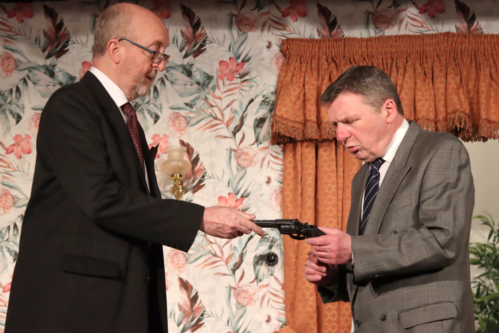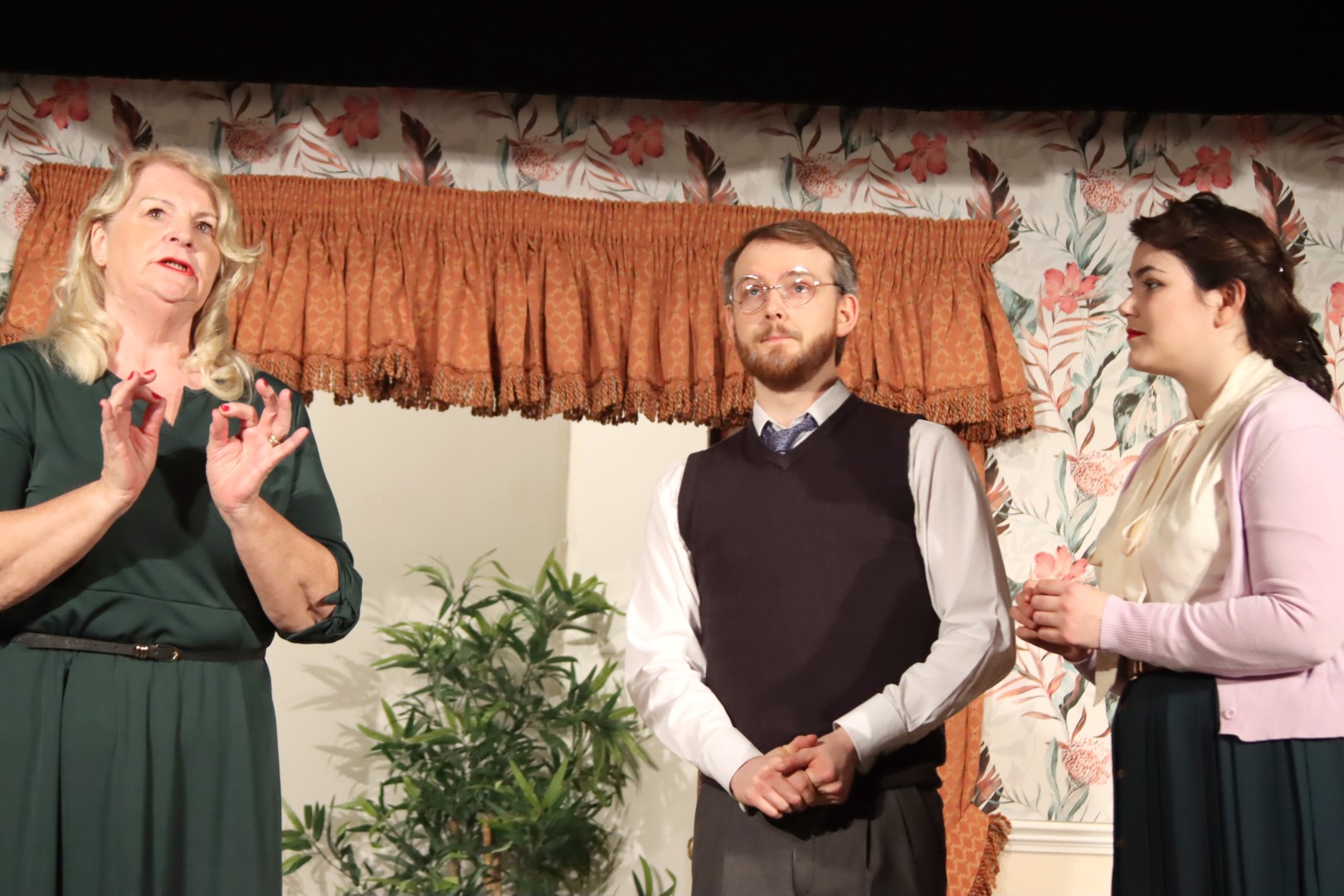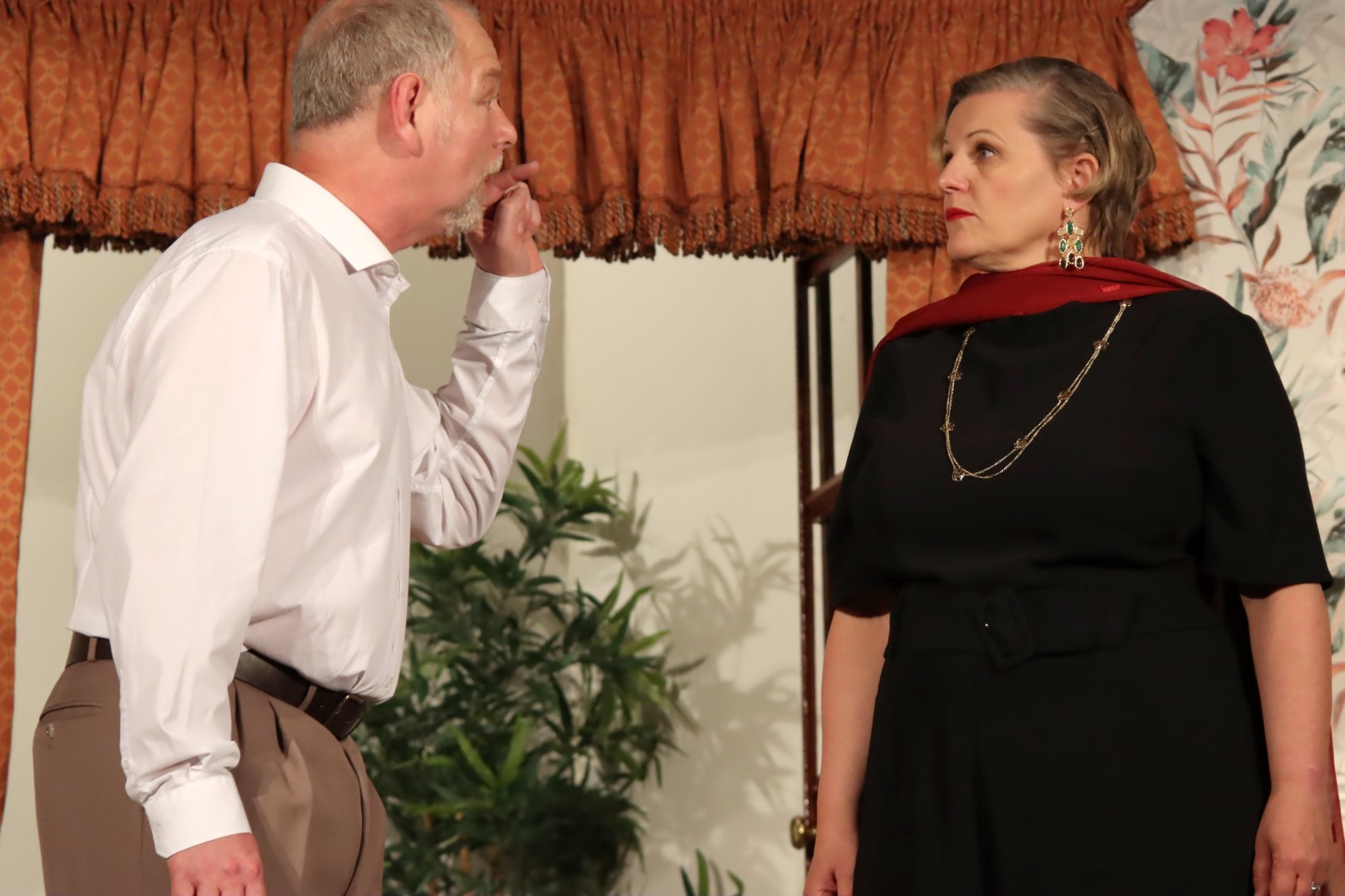 An unhappy game of romantic follow-the-leader explodes into murder one weekend at The Hollow, home of Sir Henry and Lucy Angkatell, arguably Christie’s finest comic grande dame. Dr. Cristow, the Harley Street lothario, is at the center of the trouble when, assembled in one place, we find his dull but devoted wife Gerda, his mistress and prominent sculptor Henrietta and his former lover and Hollywood film star Veronica. Also visiting are Edward and Midge whose romantic assertions are likewise thrown into the mix. As the list of romantic associations grow so does the list of potential suspects when Cristow is shot dead. Nearly everyone has a motive but only one of them did the deed. Cast and Crew Sir Henry Angkatell, K.C.B. - Colin Parrish Henrietta Angkatell - Madalyn Brooks Lady Angkatell - Wendy Cann Midge Harvey - Sofia Angulatta Mrs. Gudgeon - Lynne Percival Edward Angkatell - James Henry Doris - Vanessa Penn Dr. John Cristow, M.D., F.R.C.P. - Dallas Stuart Gerda Cristow - Amanda Stuart Veronica Craye - Jane Ferré Inspector Colquhoun, C.I.D. - Des Cann Detective Sergeant Penny - John Rudderham Director - Maureen Frost Assistant Director - Wnedy Cann Stage Manager - Val Clayton Backstage Hands - Anna Mcalaney, Kelly Davis Prompt - Geoff Meddleton Sound & Lighting - Sam Brooks Posters - Sofia Angulatta |