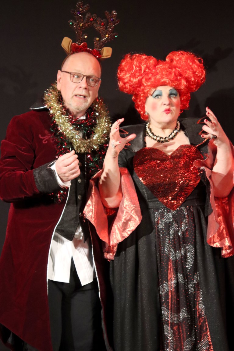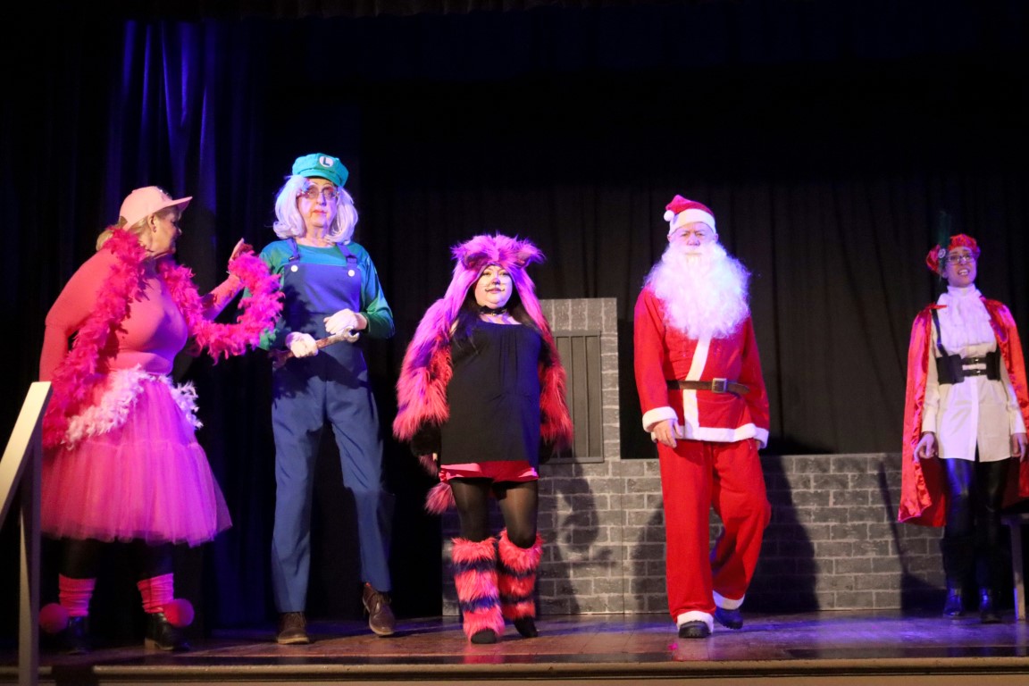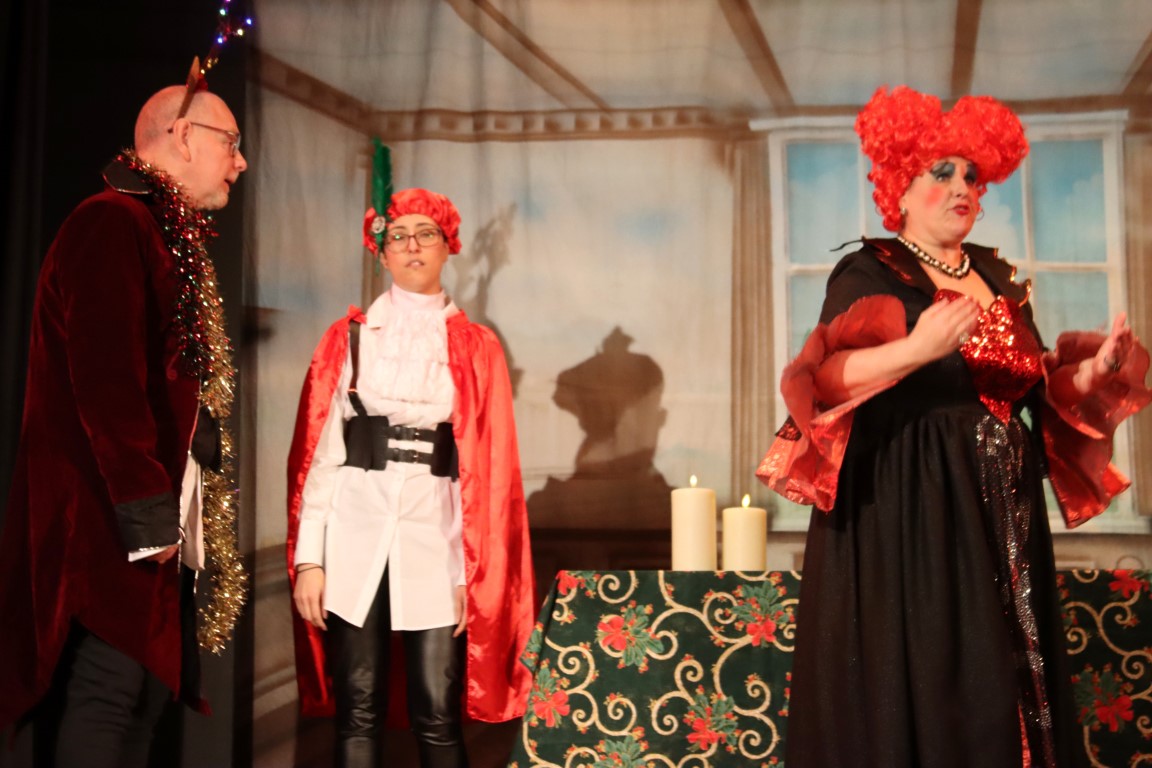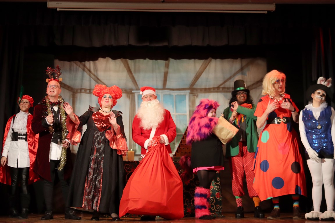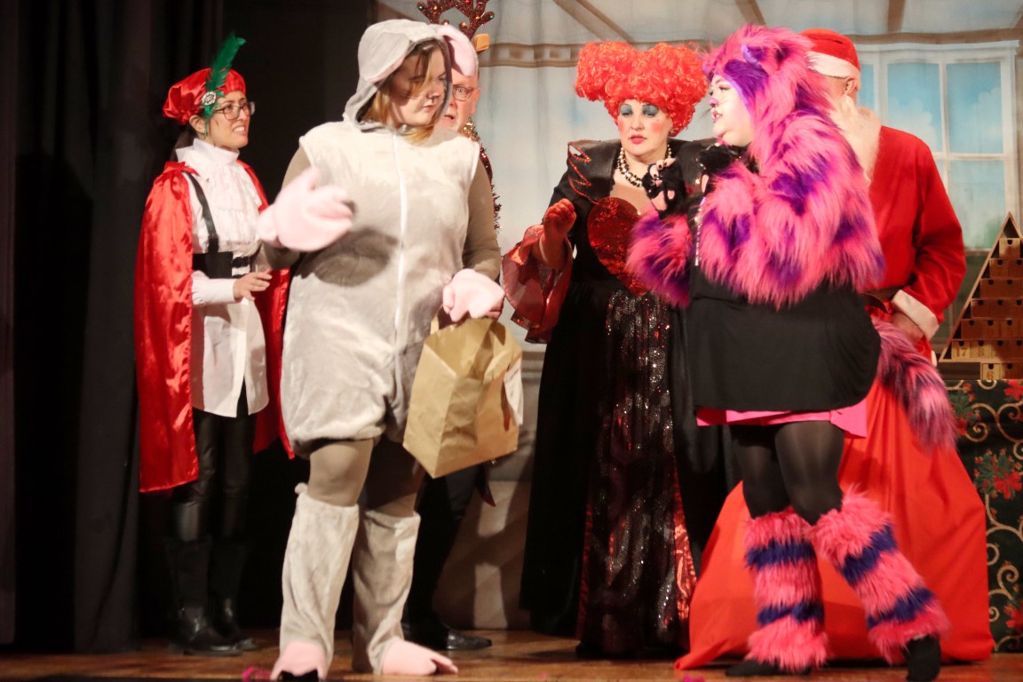 A Christmas Pantomime by Peter Nuttall The evil Queen of Hearts is determined that Christmas will be banned from her realm and Santa ends up locked in the dungeons. Dame, Old Mother Wobbly, her daughter Alice along with some friends from Cuckoo Land are keen to dissuade her. Cast and Crew Alice Wobbly - Kelly Davis Old Mother Wobbly - Des Cann Floppy - Liz Ahern Queen of Hearts - Jane Ferré King of Hearts - Dallas Stuart Tweedle Dumb - Madalyn Brooks Tweedle Dumber - Wendy Cann Hatter - Tim Senanayake Chester - Trinity (Natasha) Parvess-Williams Santa Claus - Roger Simmons Knave of Hearts - Dini Nayak Mouse - Kirsten Poole Director - Amanda Stuart Stage Manager - Lynne Pervical Prompt - Geoff Meddleton Choreography - Trinity (Natasha) Parvess-Williams Set Build - Dallas Stuart, Sam Brooks & Cast Technical - Sam Brooks Graphic Design - Sofia Angulatta Front of House - Colin Parrish, Janice Parrish, Rosalyn Young, Anna Mcalaney Bar - James Henry, Vanessa Penn Photos courtesy of Photoeyes |