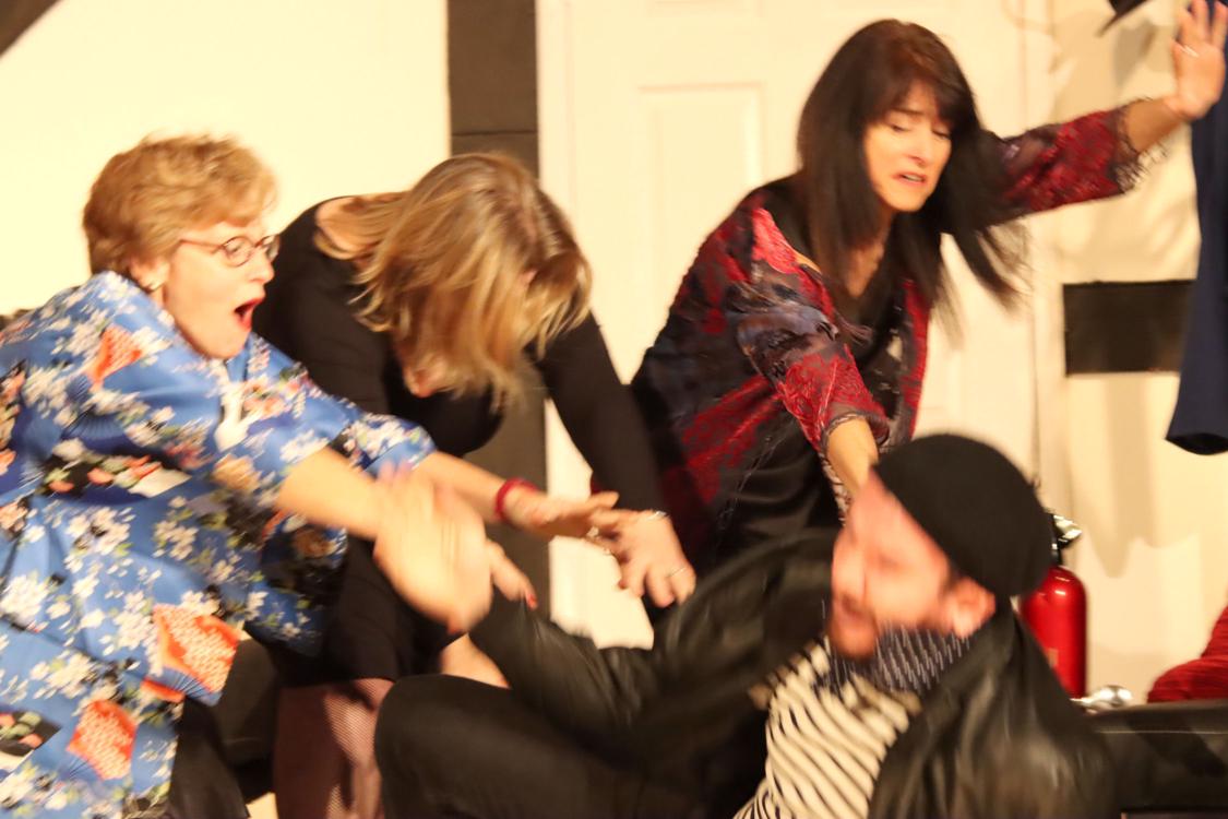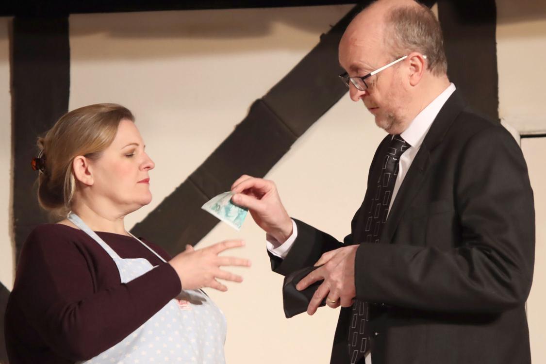 Bernard is planning a romantic weekend with his chic Parisian mistress in his charming converted French farmhouse, whilst his wife, Jacqueline, is away. He has arranged for a cordon bleu cook to prepare gourmet delights, and has invited his best friend, Robert, along too to provide the alibi. It's foolproof; what could possibly go wrong? Well.... suppose Robert turns up not realizing quite why he has been invited. Suppose Robert and Jacqueline are secret lovers, and consequently determined that Jacqueline will NOT leave for the weekend. Suppose the cook has to pretend to be the mistress and the mistress is unable to cook. Suppose everyone's alibi gets confused with everyone else's. Cast Bernard - Bob Wells Jacqueline - Madalyn Brooks Robert - Des Cann Suzette - Jane Ferré Suzanne - Janine Thomas-Rietti George - Tom Brierley Crew Director - Wendy Cann Assistant - Maureen Frost Stage Manager - Lynne Percival Assistant Stage Manager - Sofia Sanchez-Langton Set Construction - Dallas Stuart, James Henry, Cast & Crew Sound & Lighting - Sam Brooks Prompt - Geoff Middleton Social Media - Amanda Stuart Programme & Posters - Maureen Frost |