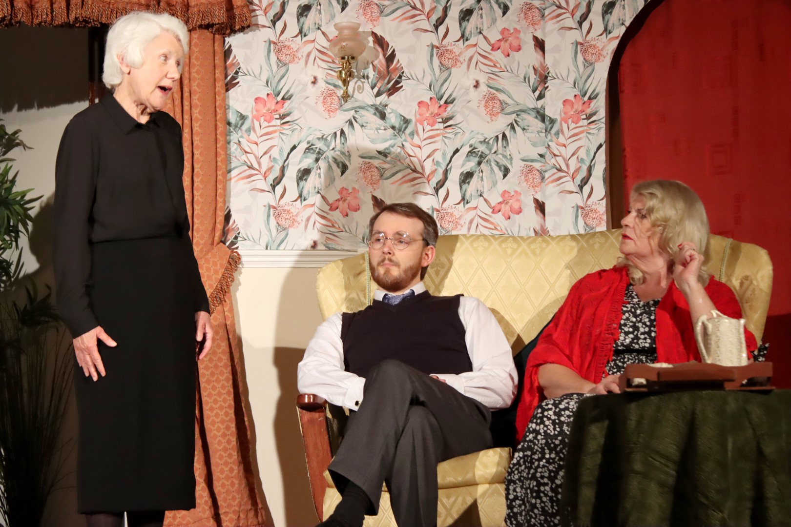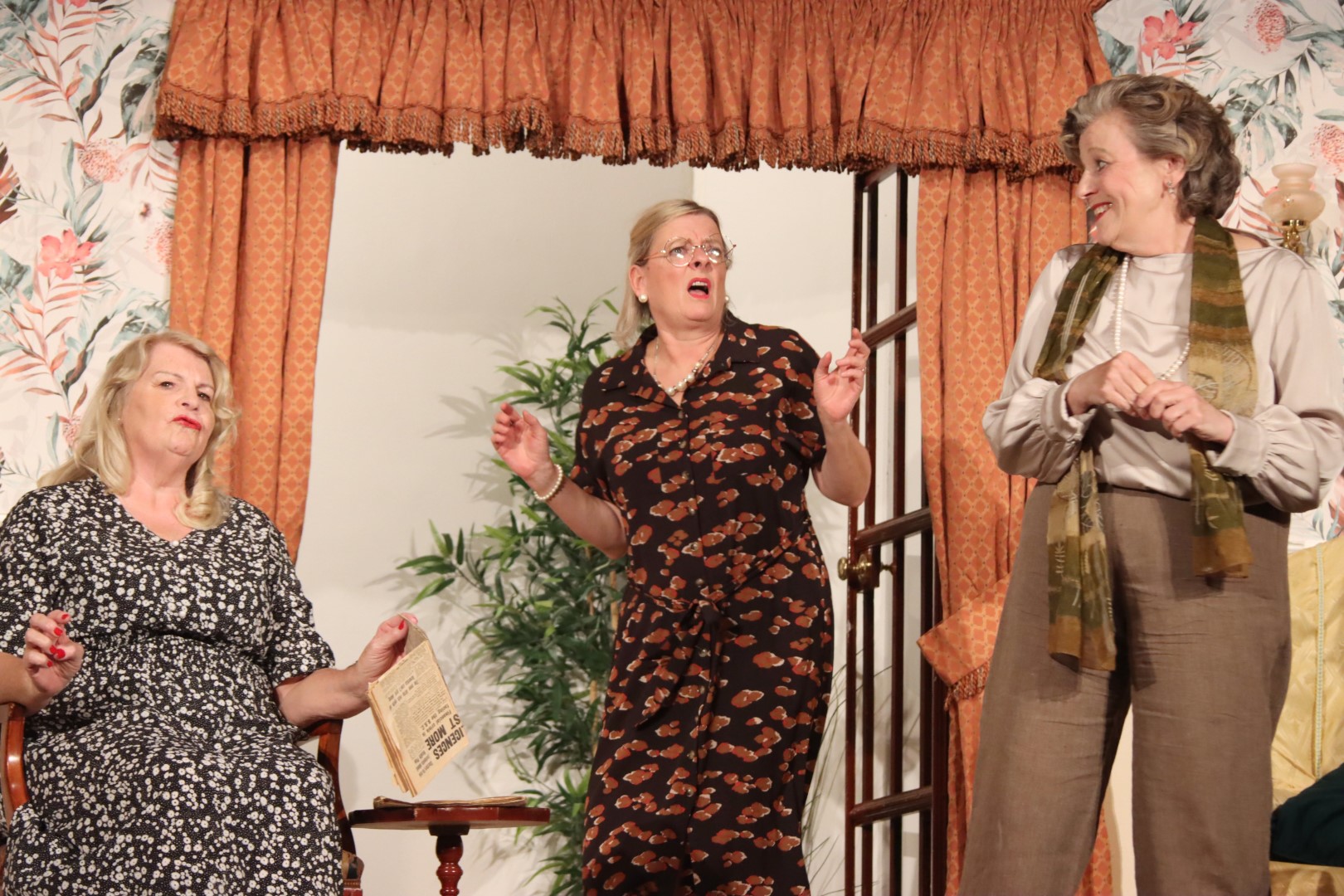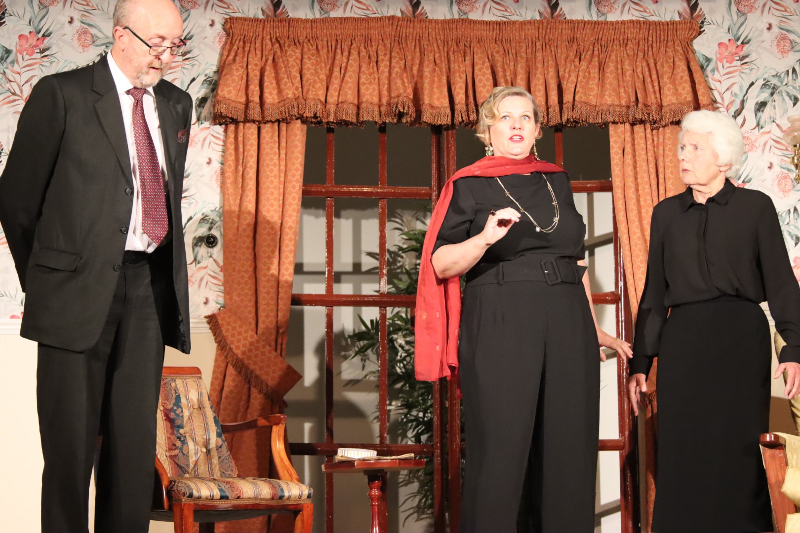 An unhappy game of romantic follow-the-leader explodes into murder one weekend at The Hollow, home of Sir Henry and Lucy Angkatell, arguably Christie’s finest comic grande dame. Dr. Cristow, the Harley Street lothario, is at the center of the trouble when, assembled in one place, we find his dull but devoted wife Gerda, his mistress and prominent sculptor Henrietta and his former lover and Hollywood film star Veronica. Also visiting are Edward and Midge whose romantic assertions are likewise thrown into the mix. As the list of romantic associations grow so does the list of potential suspects when Cristow is shot dead. Nearly everyone has a motive but only one of them did the deed. Cast and Crew Sir Henry Angkatell, K.C.B. - Colin Parrish Henrietta Angkatell - Madalyn Brooks Lady Angkatell - Wendy Cann Midge Harvey - Sofia Angulatta Mrs. Gudgeon - Lynne Percival Edward Angkatell - James Henry Doris - Vanessa Penn Dr. John Cristow, M.D., F.R.C.P. - Dallas Stuart Gerda Cristow - Amanda Stuart Veronica Craye - Jane Ferré Inspector Colquhoun, C.I.D. - Des Cann Detective Sergeant Penny - John Rudderham Director - Maureen Frost Assistant Director - Wnedy Cann Stage Manager - Val Clayton Backstage Hands - Anna Mcalaney, Kelly Davis Prompt - Geoff Meddleton Sound & Lighting - Sam Brooks Posters - Sofia Angulatta |