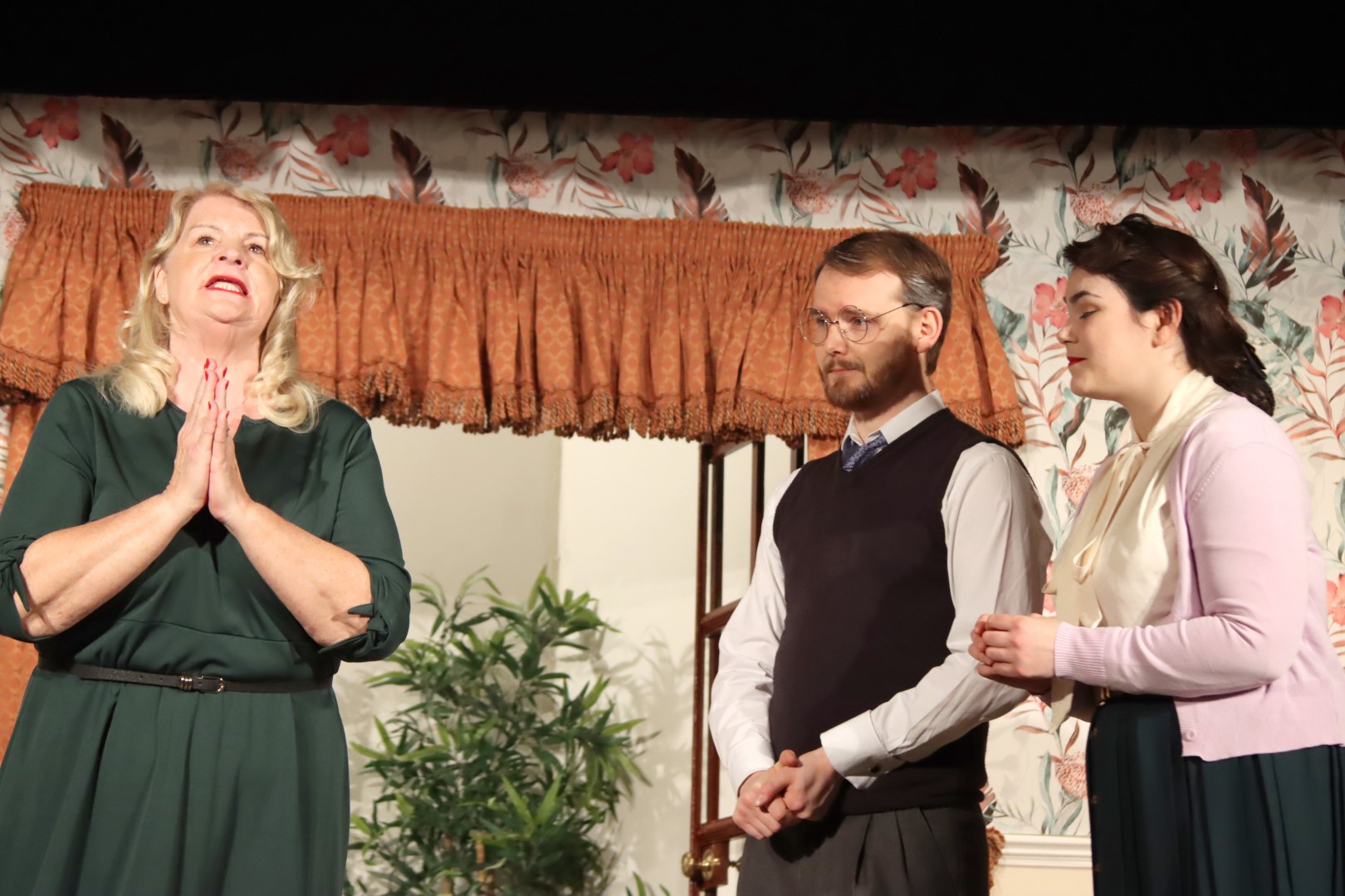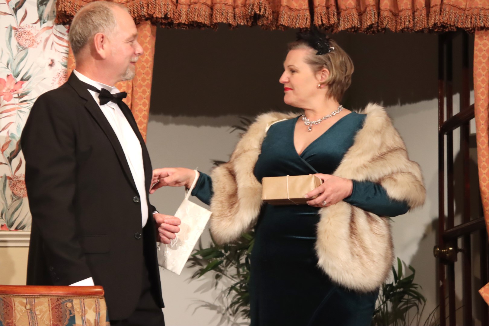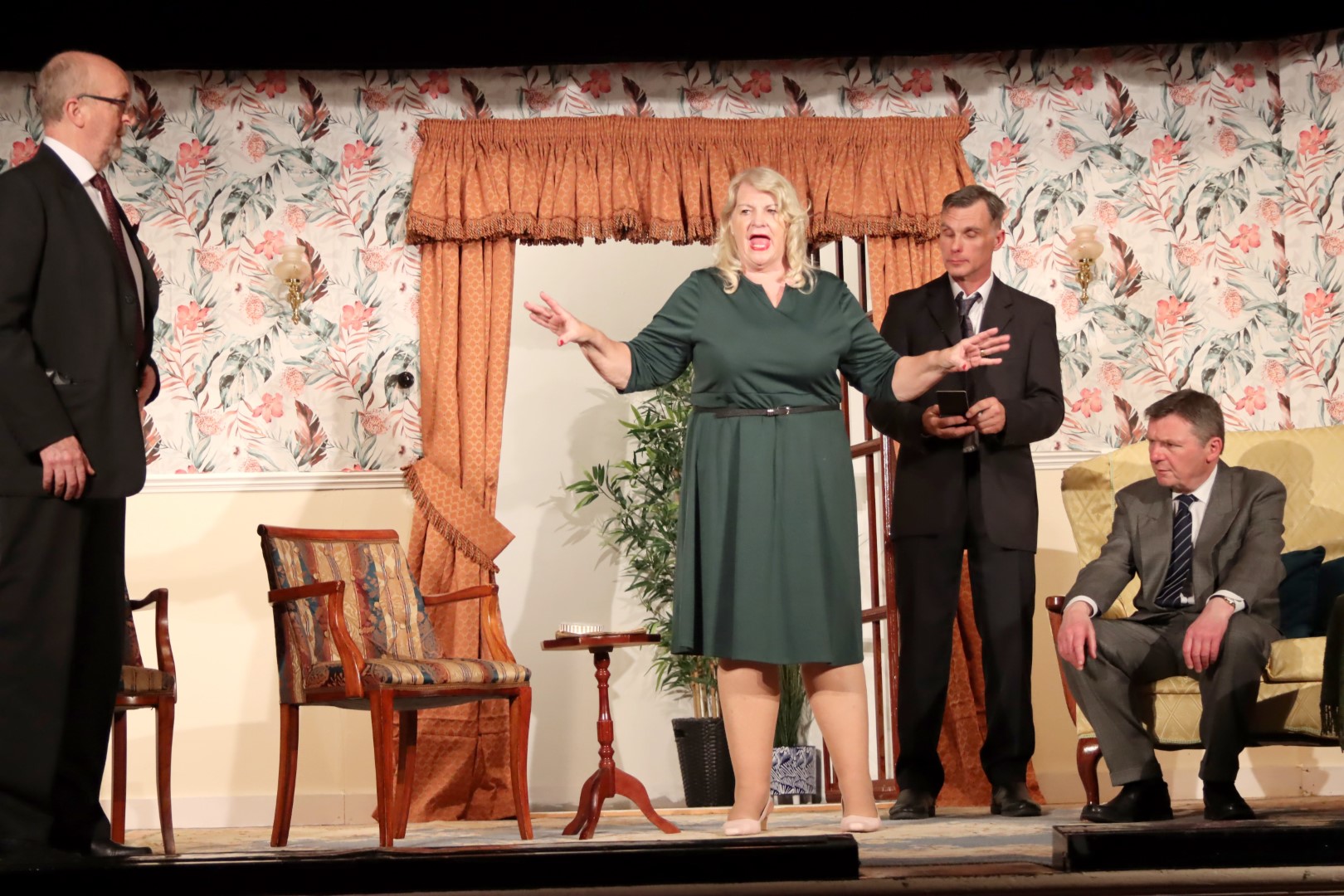 An unhappy game of romantic follow-the-leader explodes into murder one weekend at The Hollow, home of Sir Henry and Lucy Angkatell, arguably Christie’s finest comic grande dame. Dr. Cristow, the Harley Street lothario, is at the center of the trouble when, assembled in one place, we find his dull but devoted wife Gerda, his mistress and prominent sculptor Henrietta and his former lover and Hollywood film star Veronica. Also visiting are Edward and Midge whose romantic assertions are likewise thrown into the mix. As the list of romantic associations grow so does the list of potential suspects when Cristow is shot dead. Nearly everyone has a motive but only one of them did the deed. Cast and Crew Sir Henry Angkatell, K.C.B. - Colin Parrish Henrietta Angkatell - Madalyn Brooks Lady Angkatell - Wendy Cann Midge Harvey - Sofia Angulatta Mrs. Gudgeon - Lynne Percival Edward Angkatell - James Henry Doris - Vanessa Penn Dr. John Cristow, M.D., F.R.C.P. - Dallas Stuart Gerda Cristow - Amanda Stuart Veronica Craye - Jane Ferré Inspector Colquhoun, C.I.D. - Des Cann Detective Sergeant Penny - John Rudderham Director - Maureen Frost Assistant Director - Wnedy Cann Stage Manager - Val Clayton Backstage Hands - Anna Mcalaney, Kelly Davis Prompt - Geoff Meddleton Sound & Lighting - Sam Brooks Posters - Sofia Angulatta |